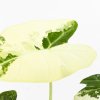 Originaria del sudeste asiático, la Alocasia Frydek Variegada es una planta exótica con hermosas hojas aterciopeladas de verde intenso, con variegación en tonos crema, y nervaduras blancas bien definidas que la hacen única.